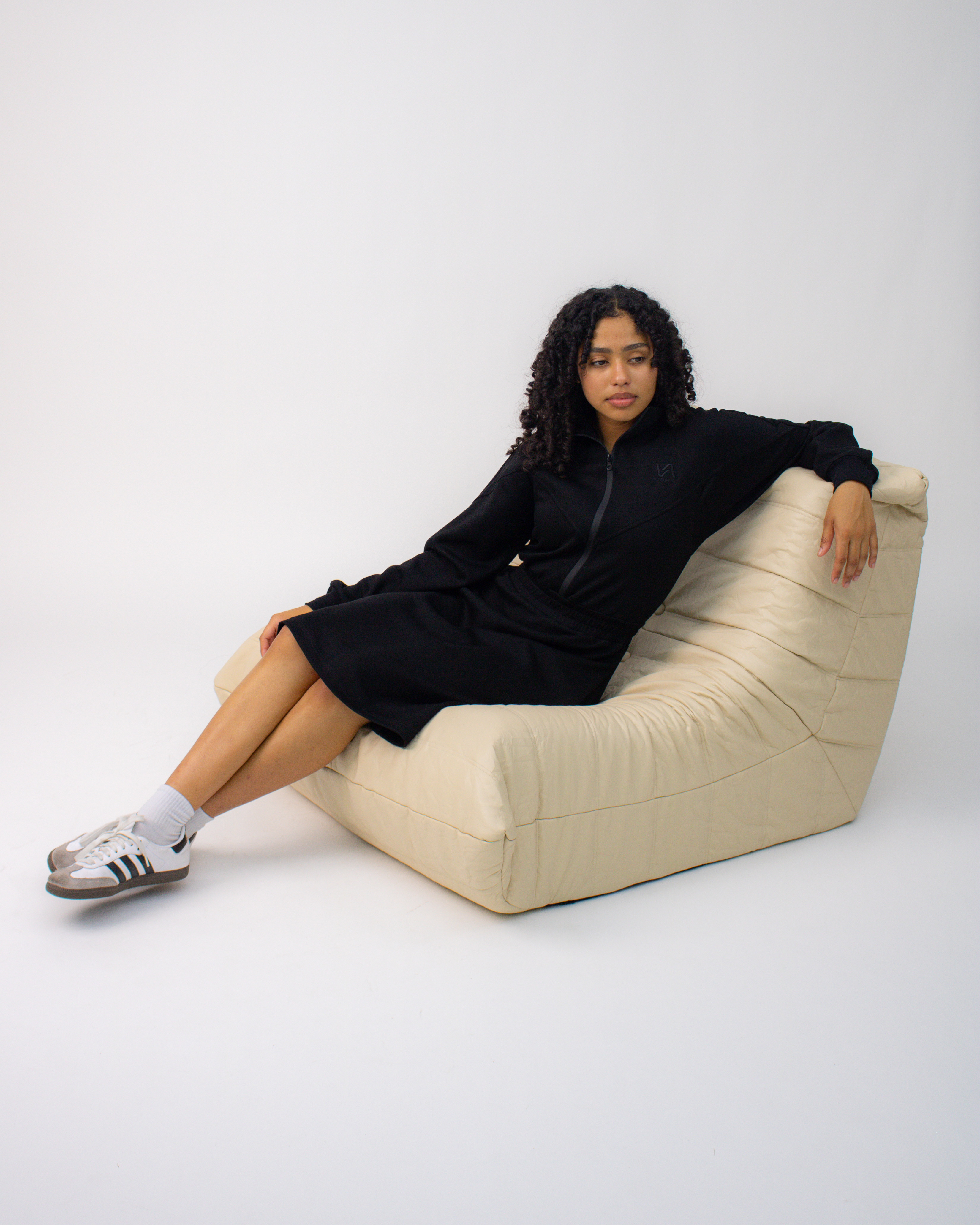 The Vora Dress merges refined design with effortless performance. Crafted from soft, flexible fabric, its long-sleeve silhouette moves fluidly while maintaining a sculpted, feminine form. Functional pockets add subtle practicality — a harmony of comfort and quiet luxury.